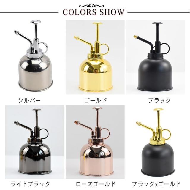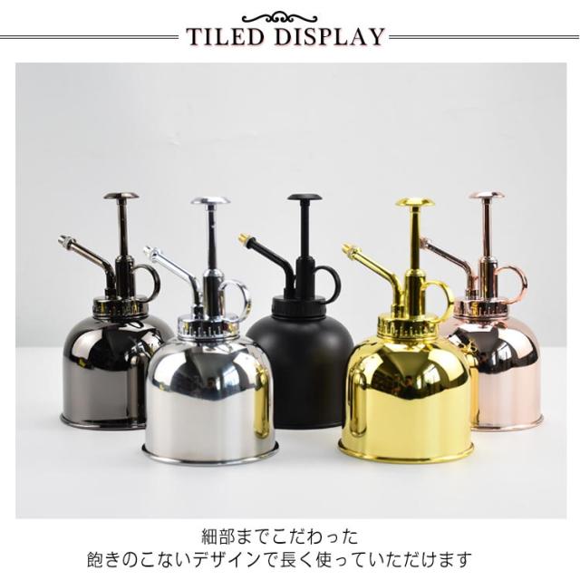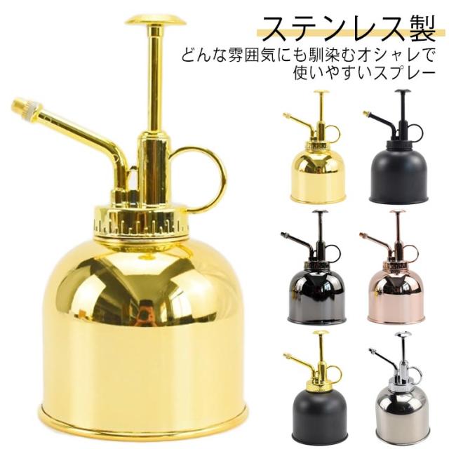 霧吹き スプレー ミスト じょうろ ガーデニング 観葉植物 園芸 お掃除 おしゃれ かわいい 高級感 インテリア 雑貨 花 植物 鉢植え プレゼント 水やり 散水 細かい プッシュ式 多用途 持ち運び 300ml 遮光性 ステンレス製 シルバー ブラック