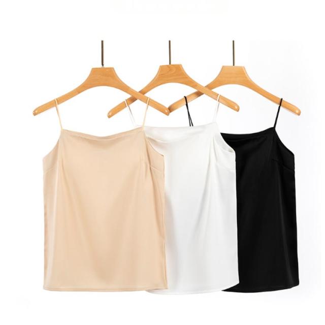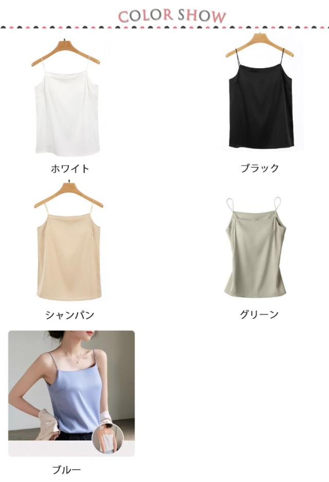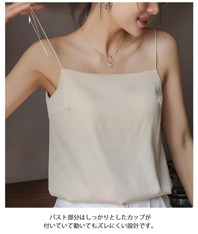 キャミソール ブラトップ レディース オフィス 細い肩紐 サテン調 ゆったり お洒落 シルクタッチ ノンワイヤー インナー 重ね着 セクシー 光沢感 カップ付き 上品 フォーマル