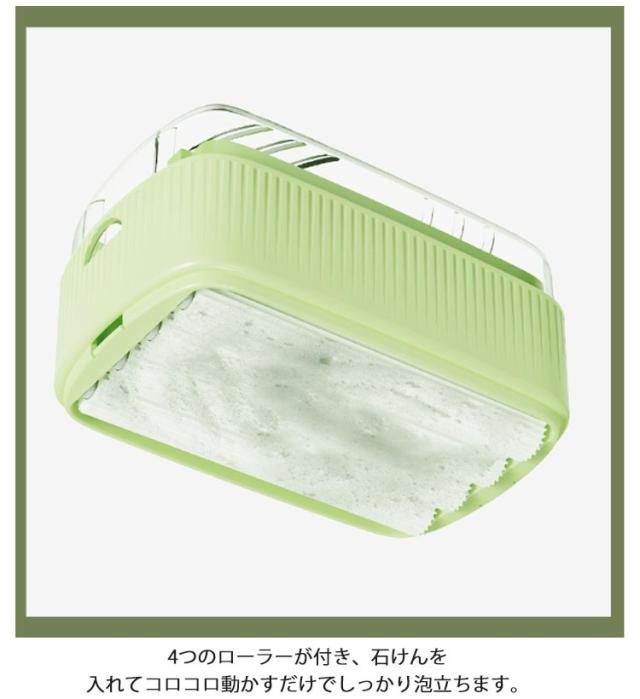 | SNS話題沸騰!固形石けんの保管に便利な石鹸ケースです。 4つのローラーが付き、石けんを入れてコロコロ動かすだけでしっかり泡立ちます。 ブラシは取り付け&取り外し可能、洗いやすくなっています。 石鹸ケースとしてもお使い頂けるので、石鹸は入れっぱなしでOK★ 水切りデザインで水を素早くむ自然に排出して乾燥させることができます。 内蔵にスプリングがあり、使用中石鹸が減って行くと、スプリングが上昇し続け、無駄なく最後まで使用できます。 コンパクトなサイズで持ち運びに便利でありながら、何度も使えます。 | |