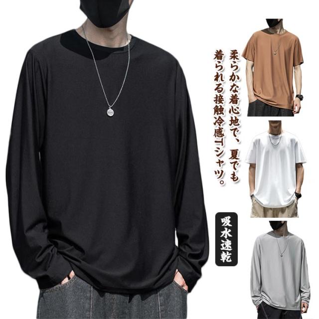 涼しい UVカット 薄手 接触冷感 長袖 吸水速乾 ドライ 冷感Tシャツ ストレッチ素材 夏用 通気性 Tシャツ Tシャツ ラッシュガード ひんやり メンズ トップス クルーネック 無地 カジュアル 大きいサイズ S〜5XL