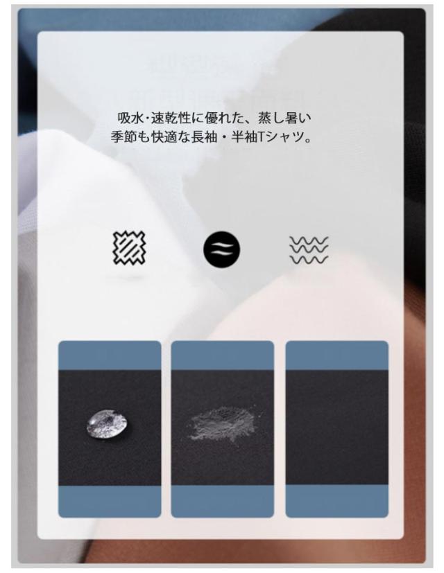 | 色 | ブラック(長袖) ライトグレー(長袖) ブルー(長袖) ブラウン(長袖) ブラック(半袖) ホワイト(半袖) ライトグレー(半袖) ブラウン(半袖) ブルー(半袖) |