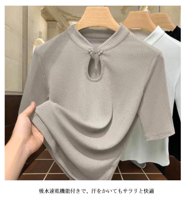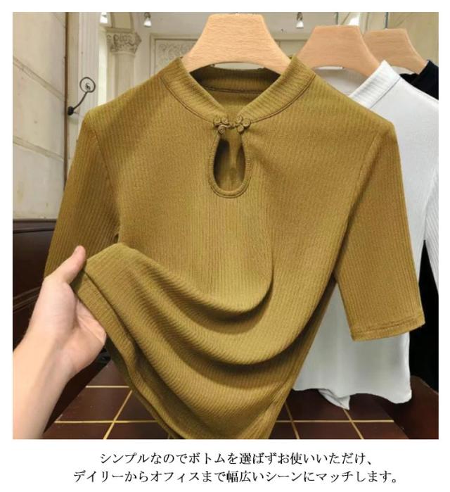 Tシャツ 通勤 チャイナ服 ブラウス 中国風 レディース トップス ブラウス シャツ 春 夏 オシャレ チャイナ風 カットソー かわいい オフィス 薄手 エレガント 半袖tシャツ カジュアル ストレッチ 着?せ 普段着 中華 半袖 S M L XL 2XL 3XL