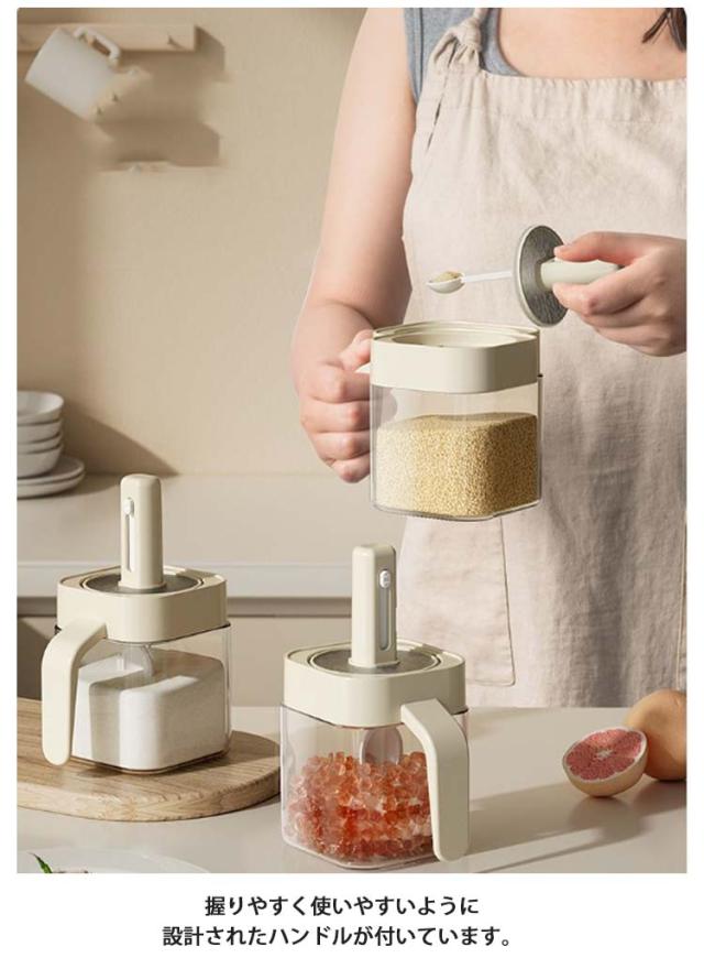 調味料入れ スパイスボトル ガラス 容器 塩入れ 調味料入れ 調味料ケース 調味料ボトル 密閉性 2個セット 保存容器 可伸縮なスプーン付き ハンドル付き お洒落 水洗いOK 家庭用