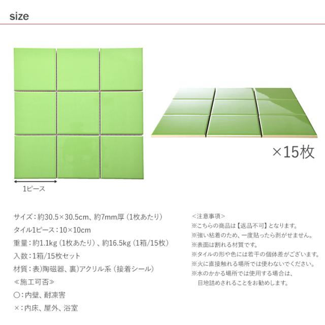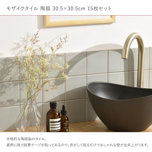 粘着テープ付き モザイクタイル 陶器 30.5×30.5cm 1箱(15枚) MB-4405 陶磁器 タイルシール 壁 キッチンタイル カフェ 店舗 レストラン リビング 寝室 玄関 テーブル 浴室 洗面台 トイレ 石材 DIY 室内 北欧 インテリア