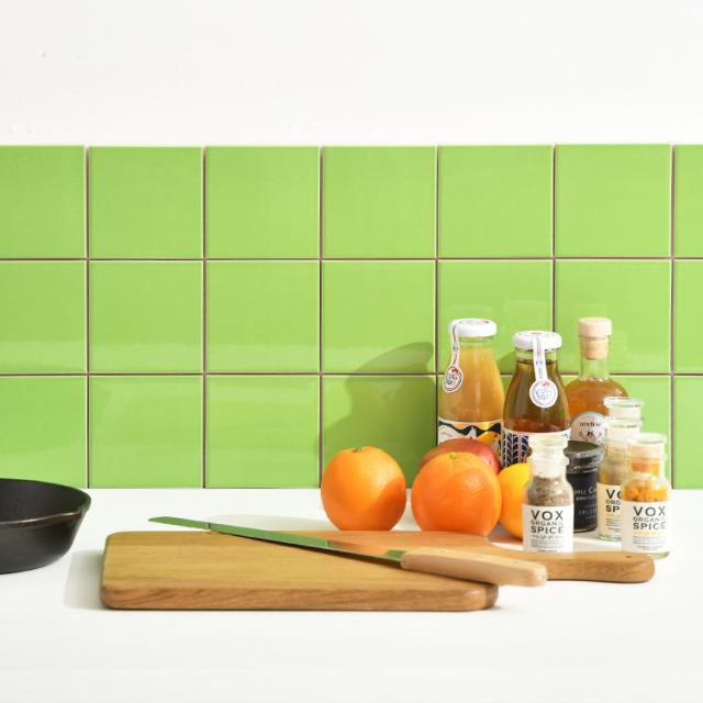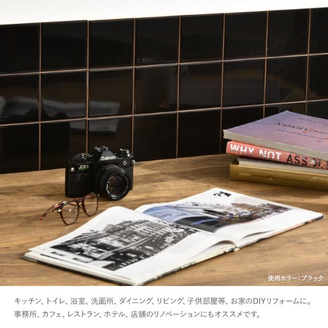 本格的な陶器製のタイルです。裏側に強力粘着テープが貼ってあるので、剥がして貼るだけでおしゃれな壁が出来上がります。