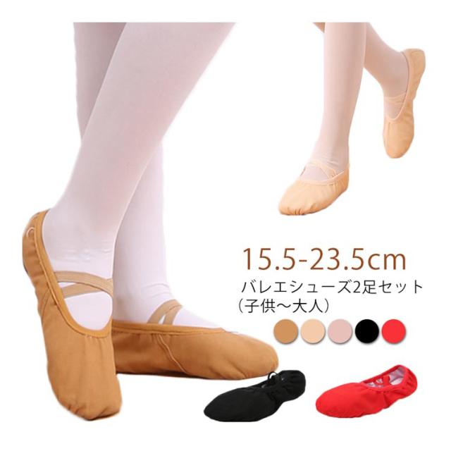 子供 【2足セット】バレエシューズ ジュニア キッズ キャンバス 練習用 大人 【2足セット】バレエシューズ クロスゴム バレエ バレエ用品 レッスン 新体操 ダンス 15.5/16/17/18/19/20/21/22/23.5cm