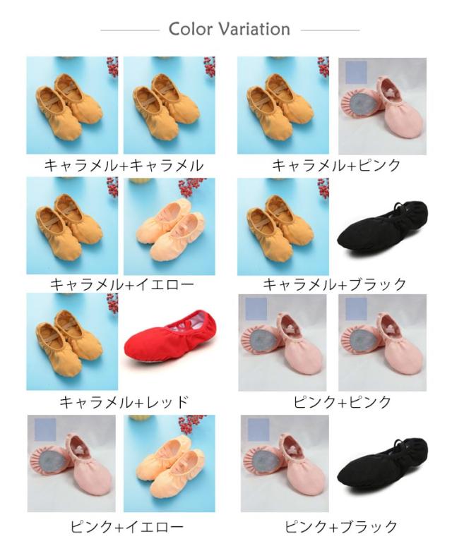 | バレエシューズ2足セット(子供〜大人) 柔らかく、丈夫なキャンパス地で、足になじみ動きやすくなっております。 底は二つに分かれたスプリットソール。 よりフィットする調節クロスゴムタイプで紐結ぶの必要もありません。 かさばらなく軽くコンパクトなので持ち運びがとても便利です。 体操、新体操、ベリーダンス、フラダンス、ジャズダンス、リトミック、チアバトン、バトンだけでなく、スリッパ、上履き、室内履きなどにも幅広くご使用いただいております。 | |