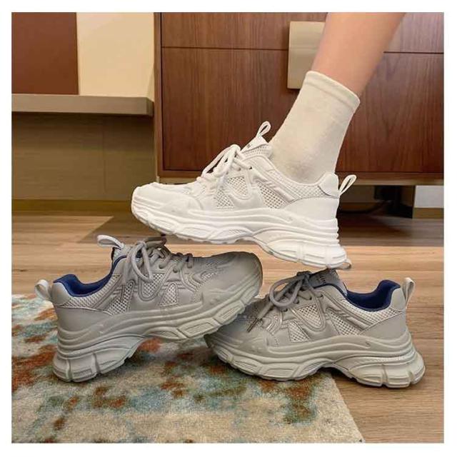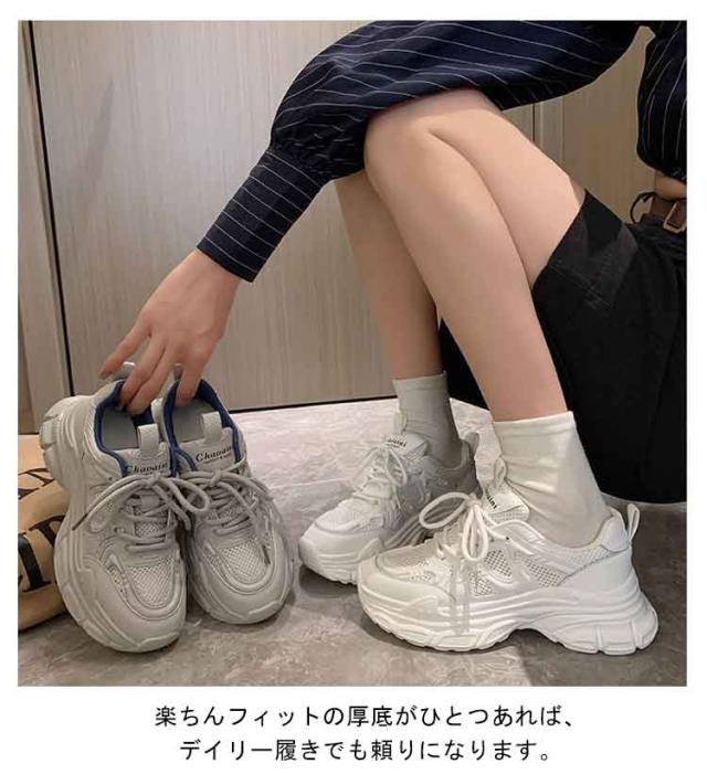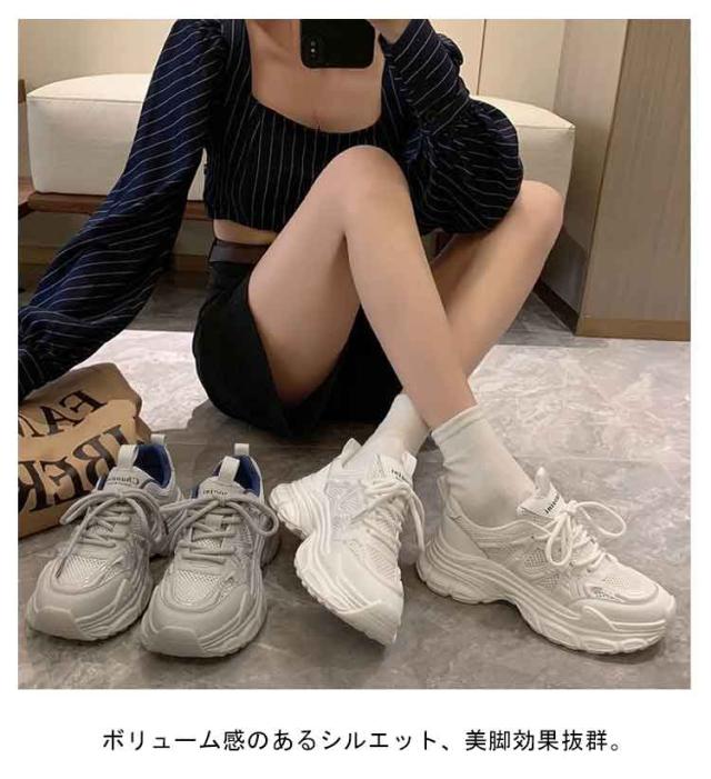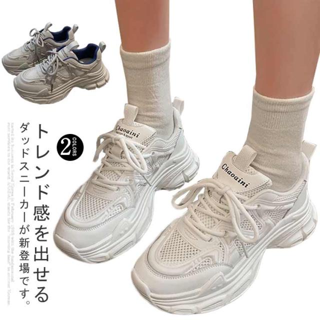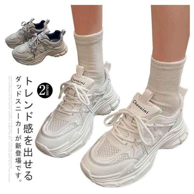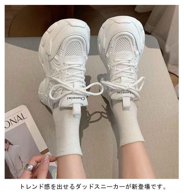 スニーカー 厚底スニーカー レディース おしゃれ 厚底 ダッドスニーカー 美脚 ダッドスニーカー シューズ 歩きやすい ヒール3cm 厚底靴 韓国風 カジュアル レースアップ 女性 ダッドシューズ ローカット