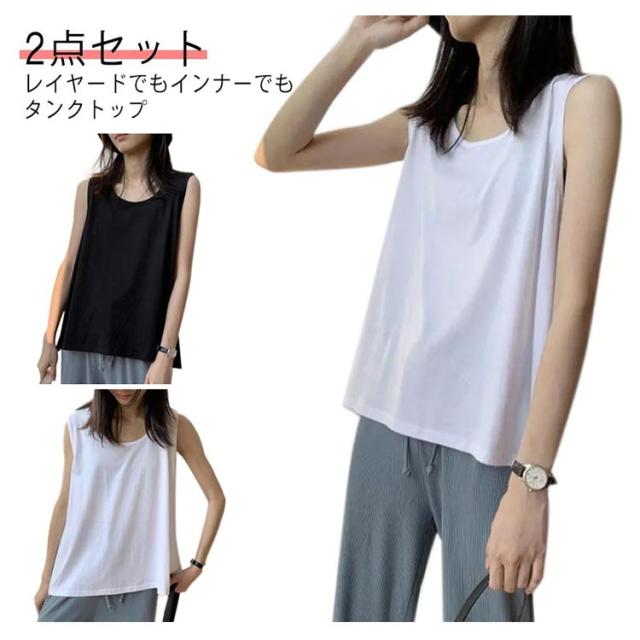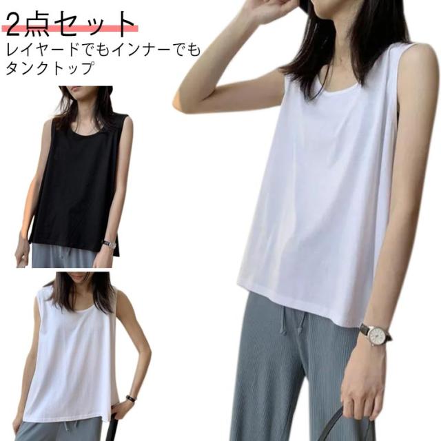 カバー 肌着 レイヤードタンクトップ 2枚セット タンクトップ ノースリーブ 重ね着 レディース 2枚セット インナー レイヤードキャミソール ラウンド キャミソール 無地 ゆったり アンダーウェア シャツ