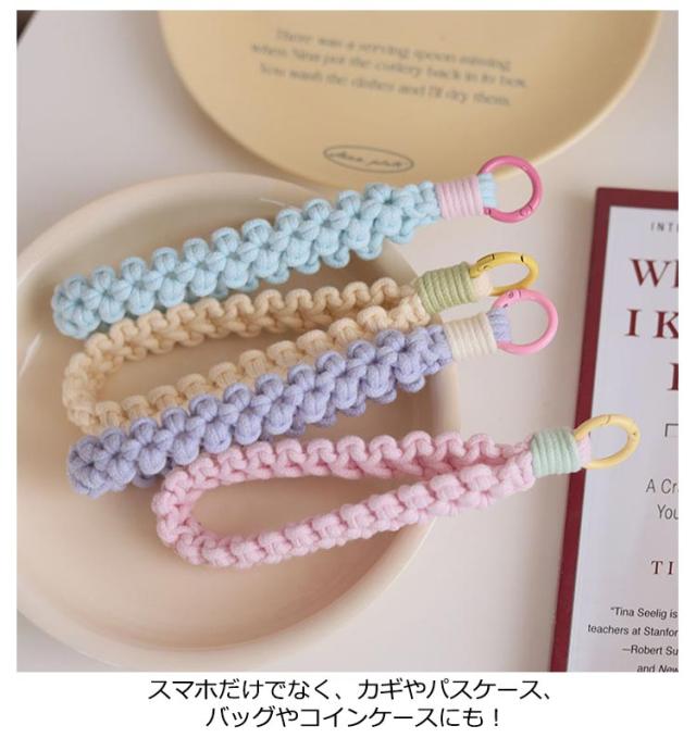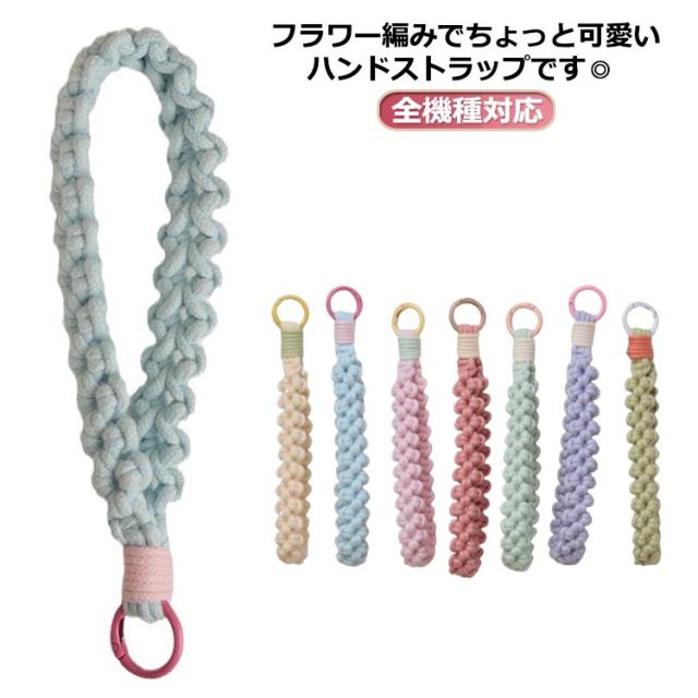 送料無料 送料無料 スマホ ロープ 手首 スマホストラップ 挟むだけ 携帯ストラップ 全機種対応 リストストラップ スマホ ストラップ ハンドストラップ フラワー編み 携帯 パスケース 鍵 キーホルダー かわいい おしゃれ