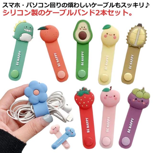 整理 収納 コード 2本セット ケーブルバンド ケーブルクリップ まとめる ケーブル 文房具 シリコン イヤホン かわいい ケーブルタイ 送料無料 スマホ ケーブルホルダー ケーブルバイト イヤホンクリップ USB コード