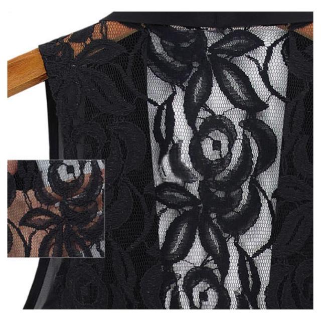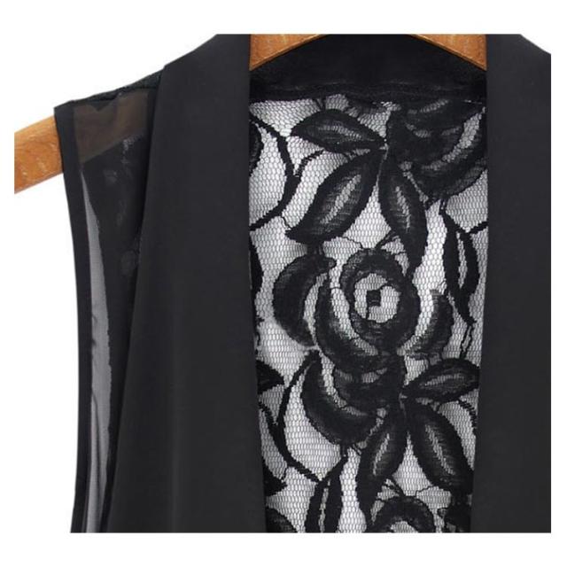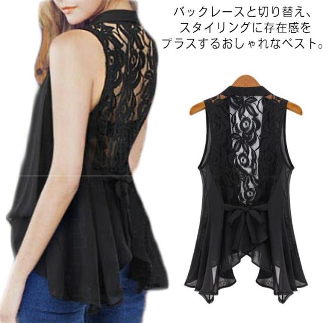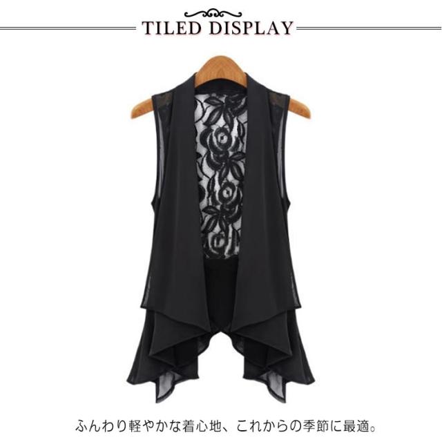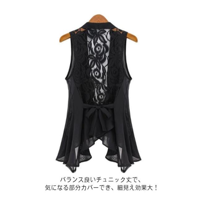 バックレース ベスト サマーカーディガン フェミニン ノースリーブ 夏用 羽織り シースルー シフォンカーディガン 透かし編み バックレース シフォン ベスト セクシー レディース 大きいサイズ M L XL 2XL 3XL 4XL