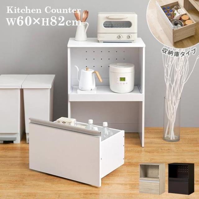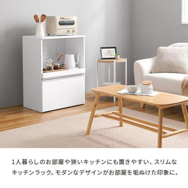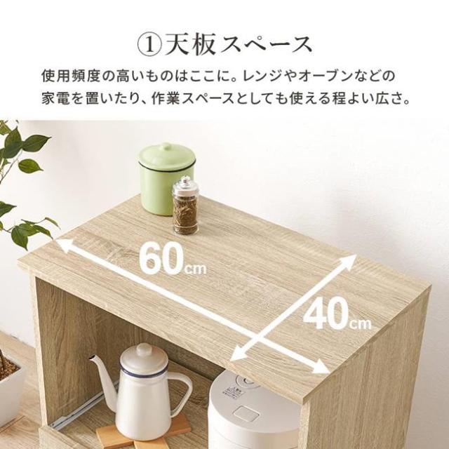 キッチンラック レンジ台 収納棚 キッチンカウンター スリム 幅60cm キャビネット キャスター付き収納庫 引き出し 戸棚収納