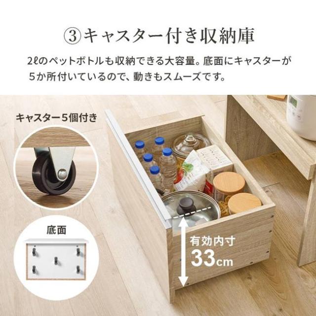 ●キャスター付き収納庫は2Lのペットボトルも収納できる大容量サイズでストッカーに。