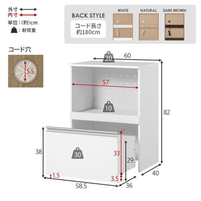 素材:主材:プリント紙化粧パーティクルボード、天板・スライド棚:合成樹脂化粧パーティクルボード、取手:スチール