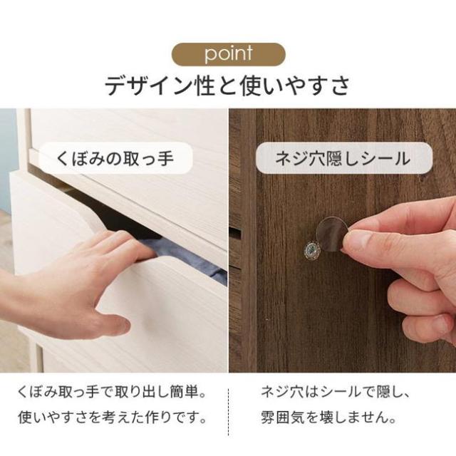 ●引き出しに取っ手を付けない凹凸のないシンプルなデザインでお部屋を選ばず置くことができます。