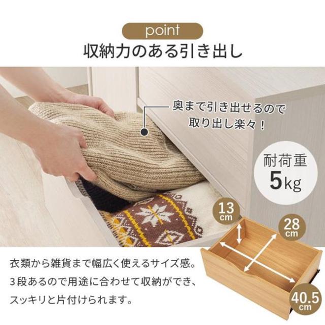 ●引き出しに取っ手を付けない凹凸のないシンプルなデザインでお部屋を選ばず置くことができます。