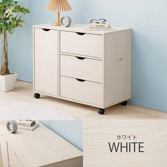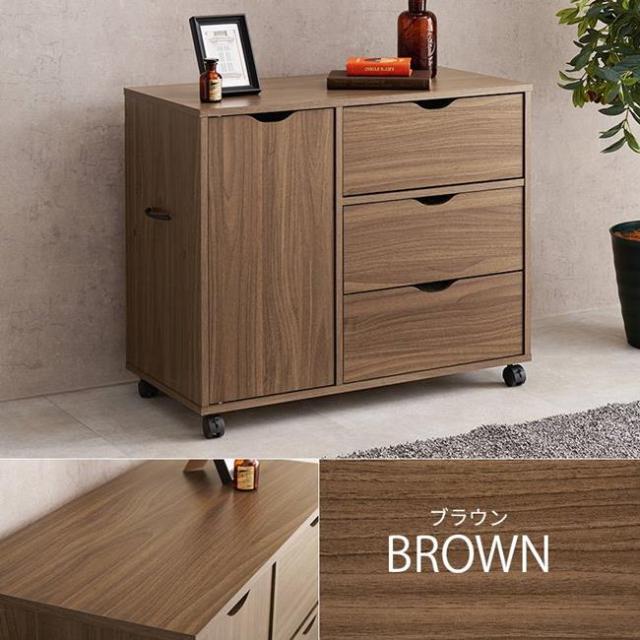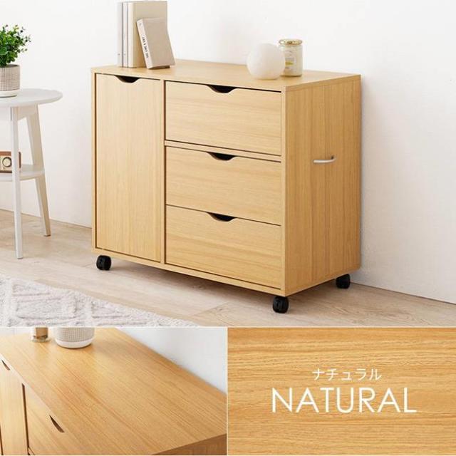 ワゴンチェスト サイドチェスト 3段 ワイド 幅80cm キャスター付き リビング デスクサイド ベッド 寝室 収納棚 おしゃれ 木目調