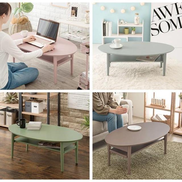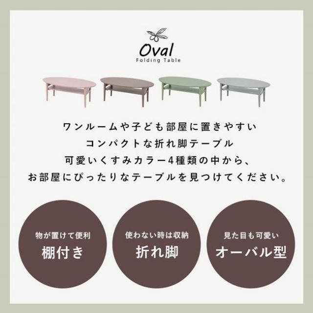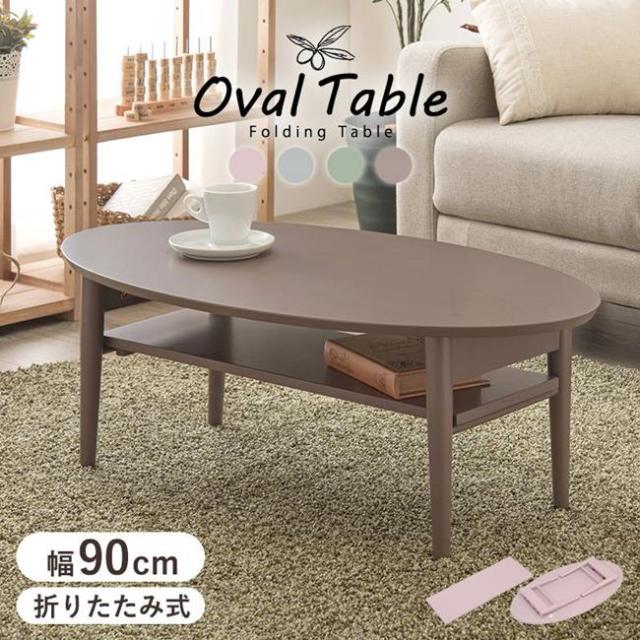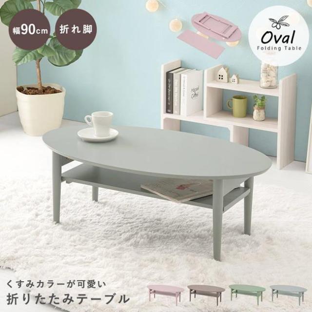 テーブル 折りたたみ オーバル 幅90cm コンパクト 折り畳みテーブル くすみカラー おしゃれ 新生活 一人暮らし 子供部屋 座卓 テーブル