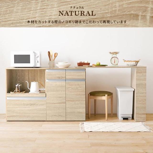 素材:主材:プリント紙化粧パーティクルボード、天板・スライド棚:合成樹脂化粧パーティクルボード、取手:スチール