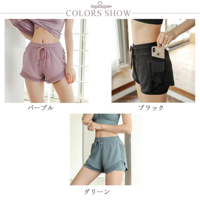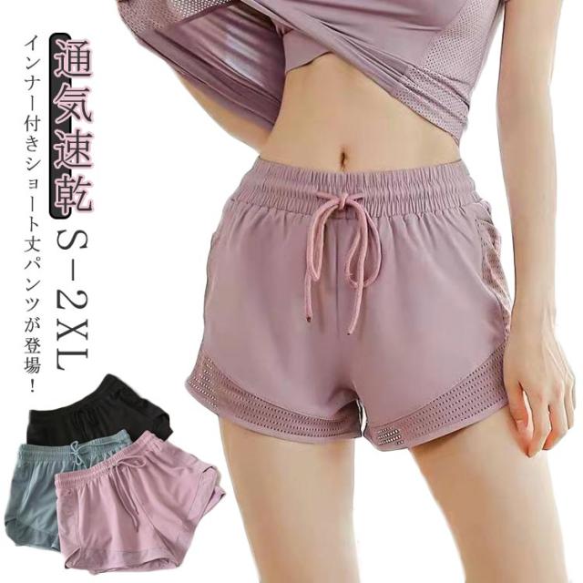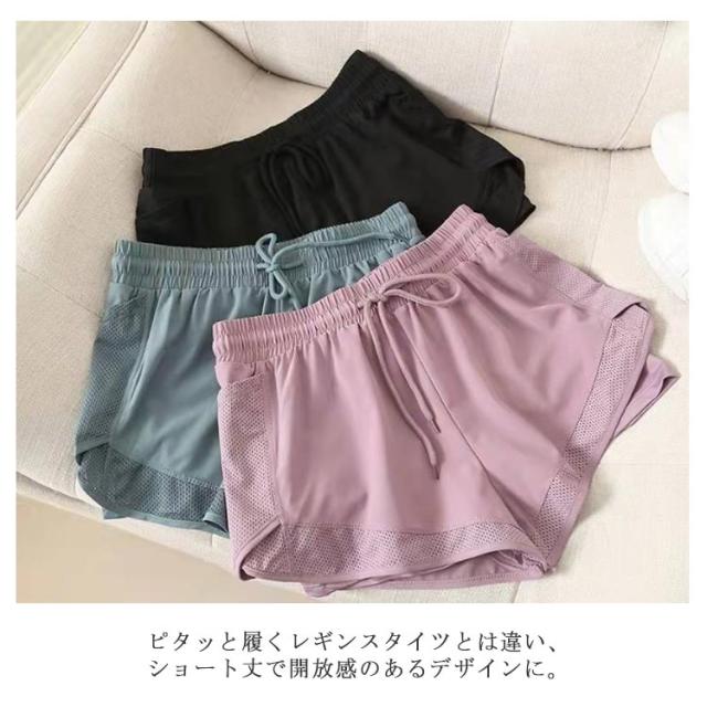 ポケット付き ショートパンツ レディース おしゃれ 運動 スポーツ ピラティス ホットヨガ ランニング ヨガパンツ フィットネス ストレッチ ヨガパンツ ジム ヨガウェア ウォーキング 夏 薄手 通気速乾 インナー付き メッシュ ショートパンツ