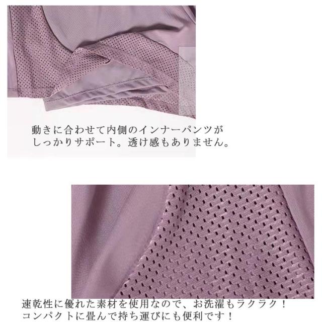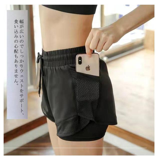 | インナー付きショート丈パンツが登場! バックハイウエストにファスナーポケット付き、鍵やお金などの小物は楽に入れ、運動時の機能性も考慮して作られています。 ピタッと履くレギンスタイツとは違い、ショート丈で開放感のあるデザインに。 動きに合わせて内側のインナーパンツがしっかりサポート。透け感もありません。 メッシュ素材を重ねたデザインなので、通気性もよく汗ムレを防ぎます。 幅が広いのでしっかりウェストをサポート、食い込みの心配もありません。 速乾性に優れた素材を使用なので、お洗濯もラクラク!コンパクトに畳んで持ち運びにも便利です! ヨガ、スポーツ、フィットネス、レジャーなど様々なシーンに大活躍。 | |