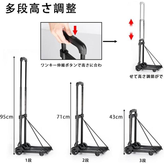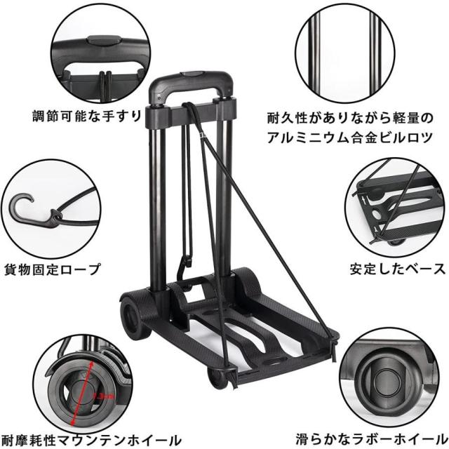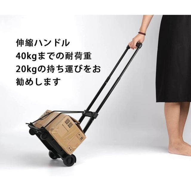 キャリーカート 台車 折りたたみ式 超コンパクト 静音 伸縮荷台 固定ロープ付き 運びに便利 耐荷重量50KG
