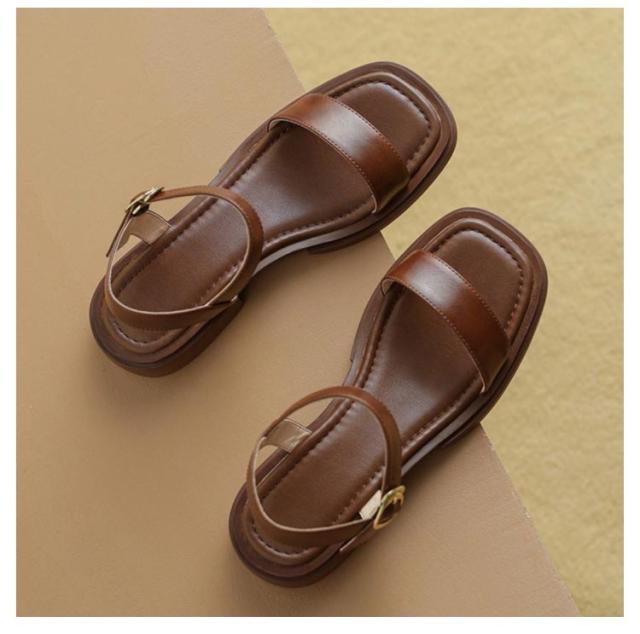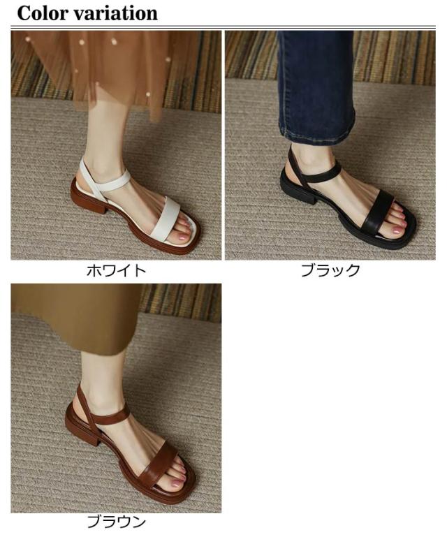 きれいめ コンフォートサンダル レディース ストラップサンダル サンダル PU 痛くない フラットシューズ 通勤 スクエアトゥ 大人女性 レザー靴 プレゼント フラット ローヒール おしゃれ ビンテージ 大きいサイズ アンクルストラップ 通学 ギフト 歩きやすい