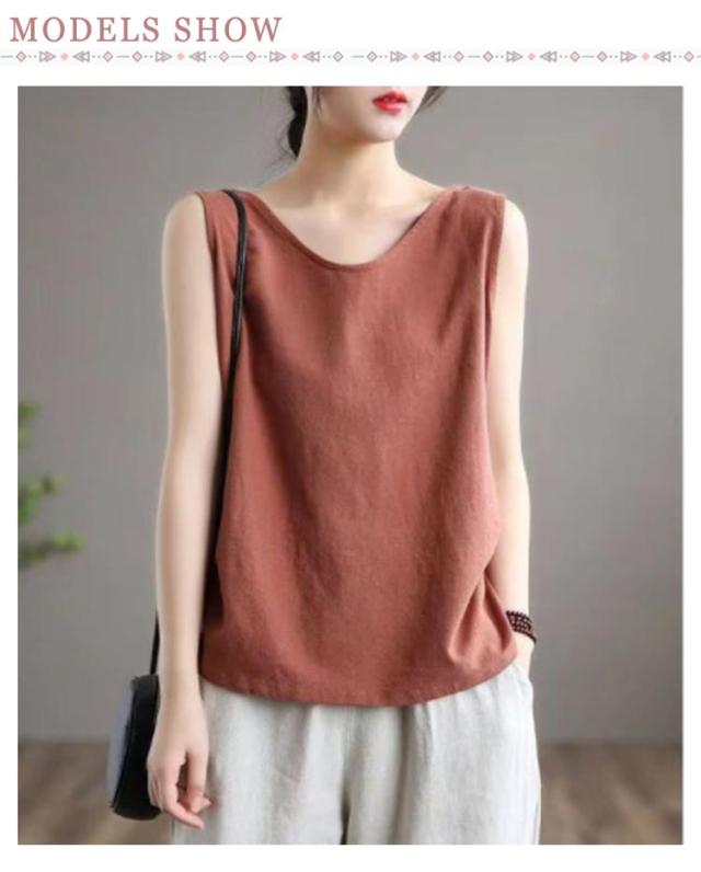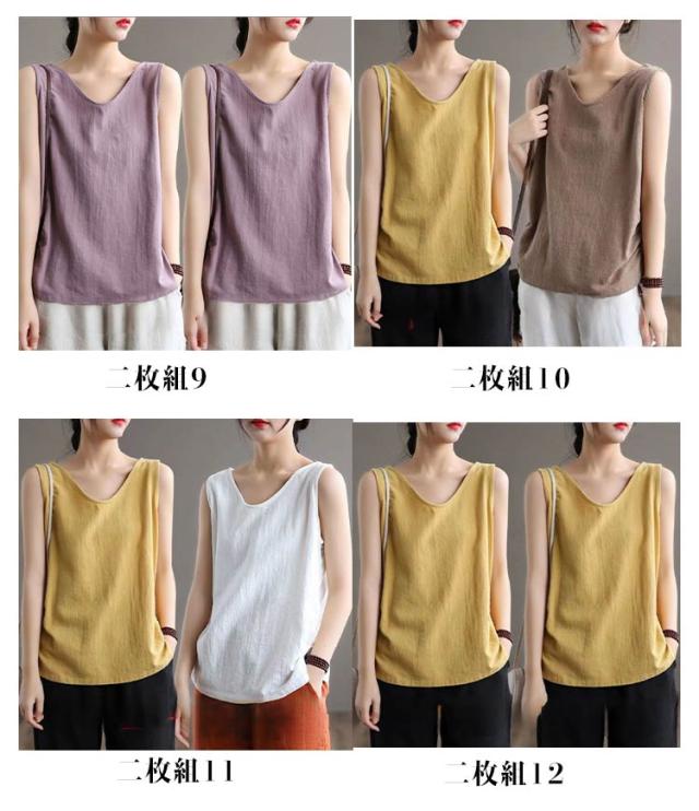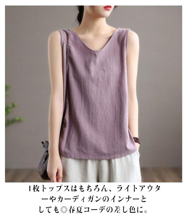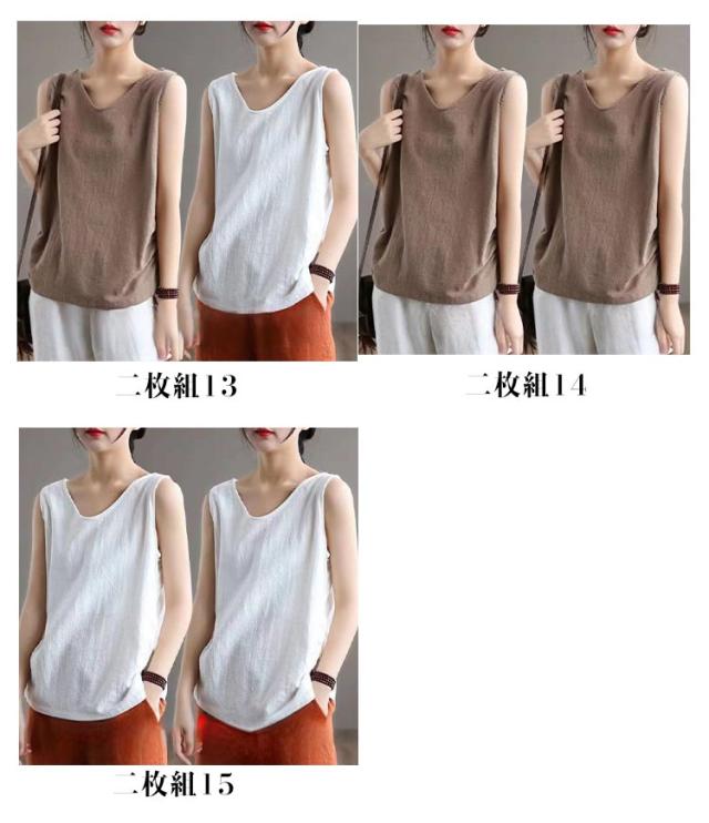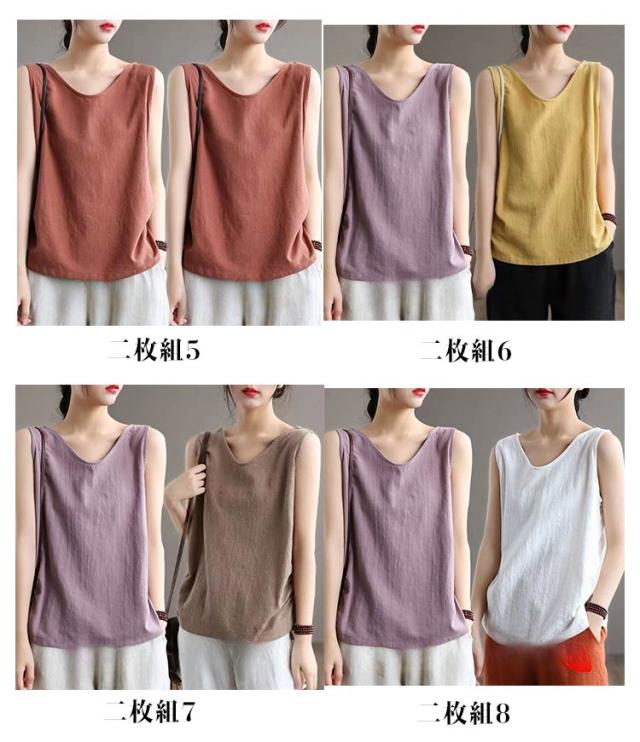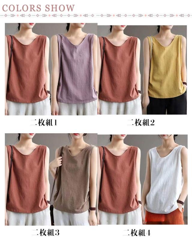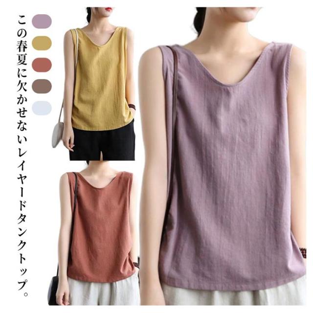 タンクトップ レディース Tシャツ コットン綿 トップス タンクトップ 無地 ブラウス 40代 2枚セット 夏 重ね着 レイヤード 着痩せ ノースリーブ 30代 丸首 おしゃれ キャミソール お洒落 大きいサイズ 体型カバー 春 ノースリーブ 綿麻風