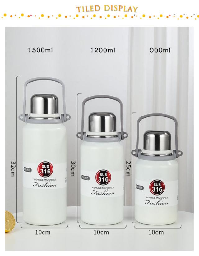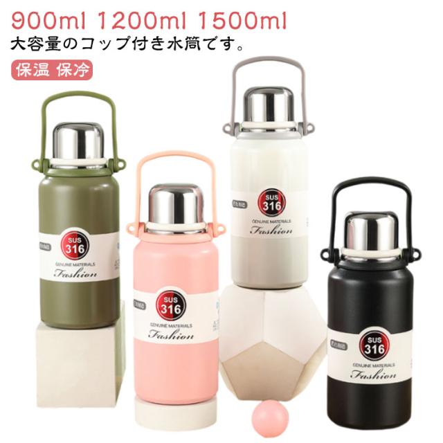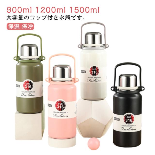 ステンレスボトル スポーツボトル 水筒 ステンレス マグボトル コップ付き 大容量 保温 魔法瓶 持ち運び 肩紐付き 直飲み アウトドア 保冷 肩掛け ショルダー 遠足 ウォーターボトル 1.5リットル 1.5リットル 運動会 登山 旅行用 キッズ 子供用 大人用 900ml 真空断熱
