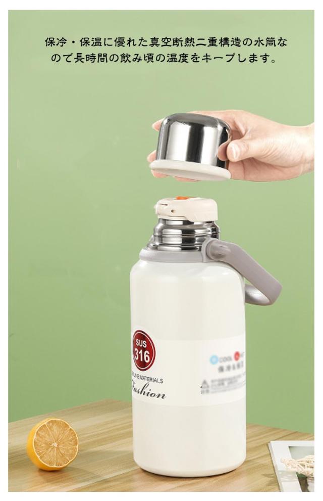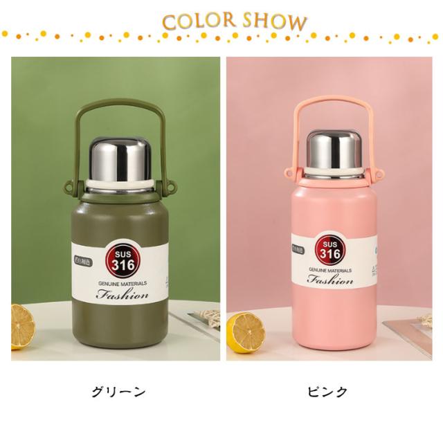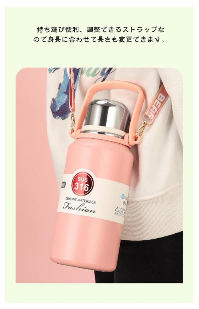 | 大容量のコップ付き水筒です。 保冷・保温に優れた真空断熱二重構造の水筒なので長時間の飲み頃の温度をキープします。 アウトドアにはもちろん、室内での水分補給もしっかりとれます。 持ち運び便利、調整できるストラップなので身長に合わせて長さも変更できます。 オフィス・学校用の水筒や部活、スポーツ、外での営業仕事や移動が多い方にもおすすめです。 | |