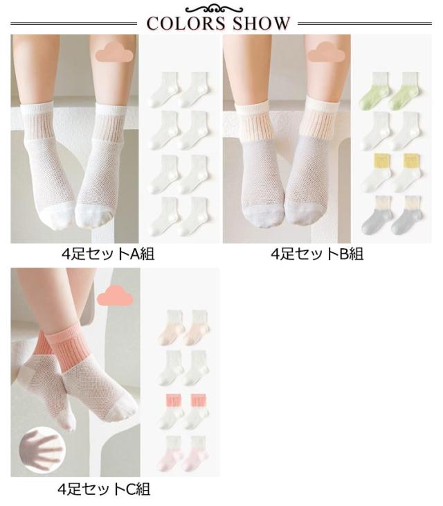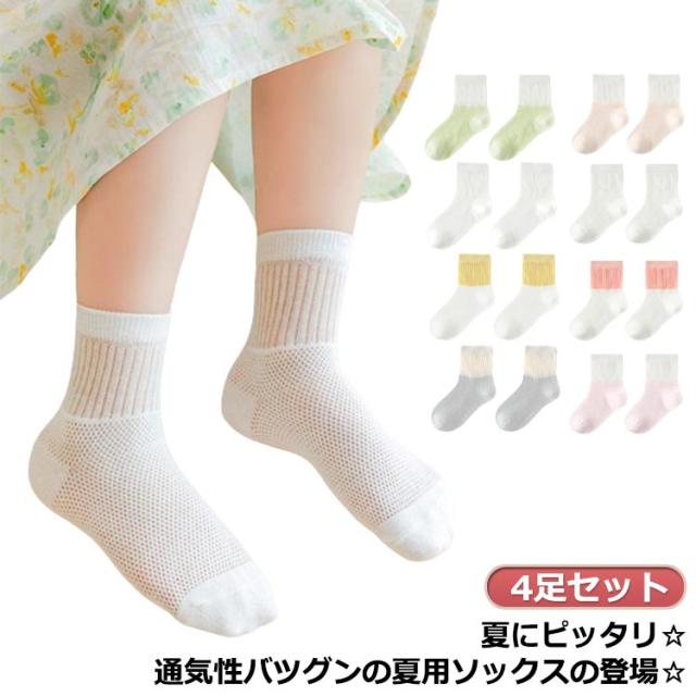 アンクルソックス コットン 夏用 靴下 メッシュソックス キッズ 赤ちゃん 子供 ベビーソックス ショートソックス くつ下 ベビーソックス 送料無料 綿 男の子 女の子 涼しげ 新入園 シンプル 可愛い 快適 通気性 ムレ防止 プレゼント 4足セット