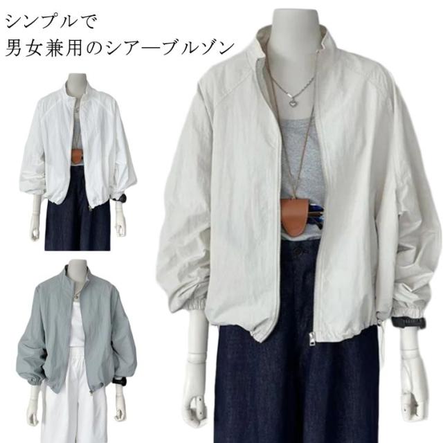レディース シア—ブルゾン 羽織り ショート 透け感 ライトアウター シースルー シア—ブルゾン ジップアップ ノーカラー 長袖 シアー 薄手 ジャケット 軽い 軽量 カジュアル 大きいサイズ 春 夏 紫外線対策