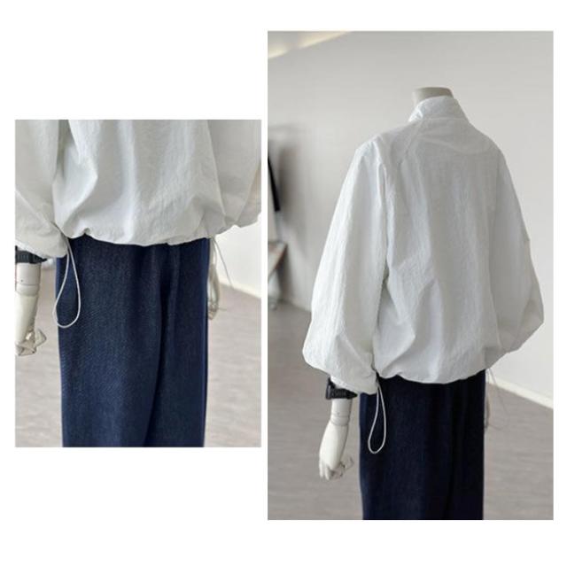 | シンプルで男女兼用のシア—ブルゾン 透け感のあるオーガンジーを使用したブルゾン。 軽やかな素材がスタイリングに抜け感とおしゃれさをプラスしてくれます。 フロントはZIP仕様になっているので、着脱しやすいのも魅力的。 コンパクトな丈感なのでスタイルアップ効果も | |
