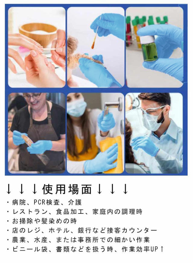 | 【ニトリル手袋 300枚セット】 ニトリル手袋は丈夫で、フィット感抜群、使いやすい手袋です。 ★推奨するポイント ・指先強化で破れにくい ・耐油耐摩耗性に優れたニトリルゴム製 ・極薄タイプの手軽で便利な手袋 ・しなやかで優しいフィット感 ・便利な左右兼用タイプ ・ラテックス成分無し、アレルギーフリー ↓↓↓使用場面↓↓↓ ・病院、PCR検査、介護 ・レストラン、食品加工、家庭内の調理時 ・お掃除や髪染めの時 ・店のレジ、ホテル、銀行など接客カウンター ・農業、水産、または事務所での細かい作業 ・ビニール袋、書類などを扱う時、作業効率UP↑ | |