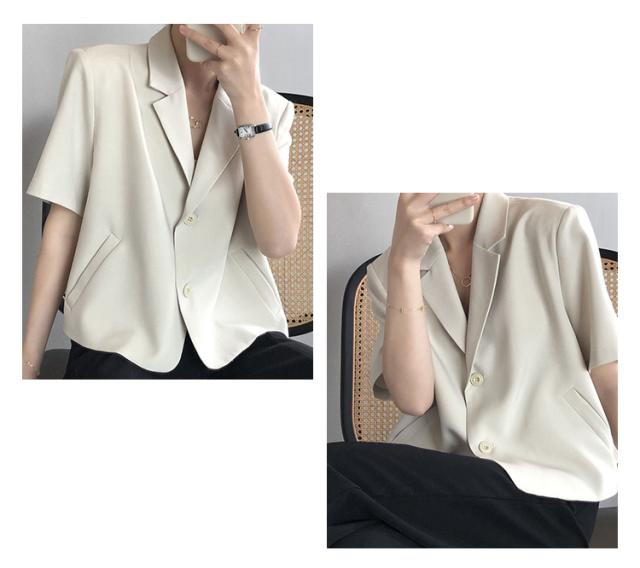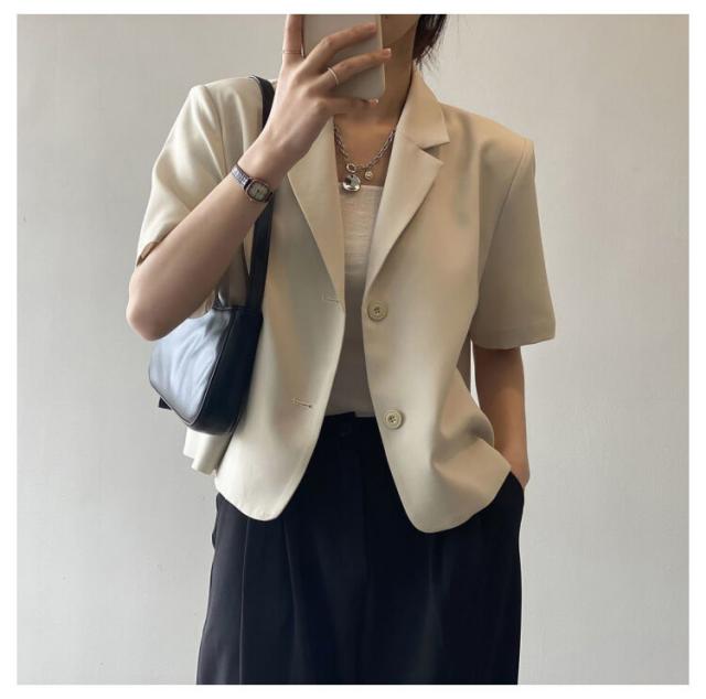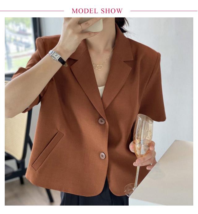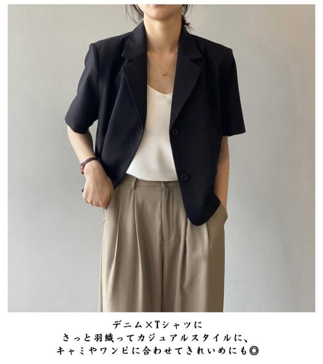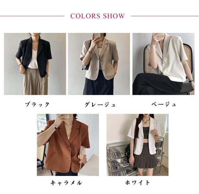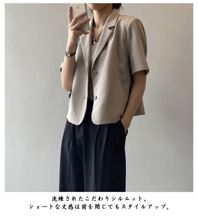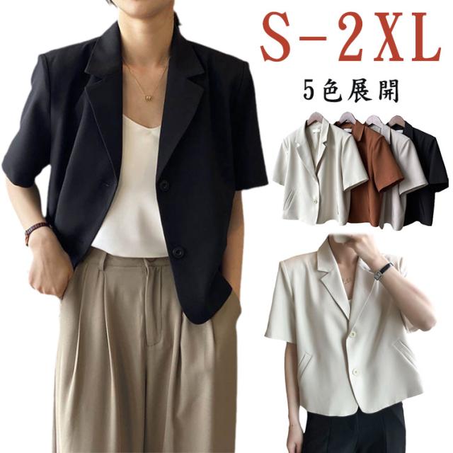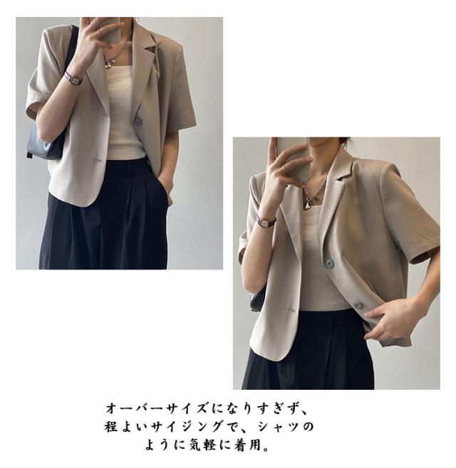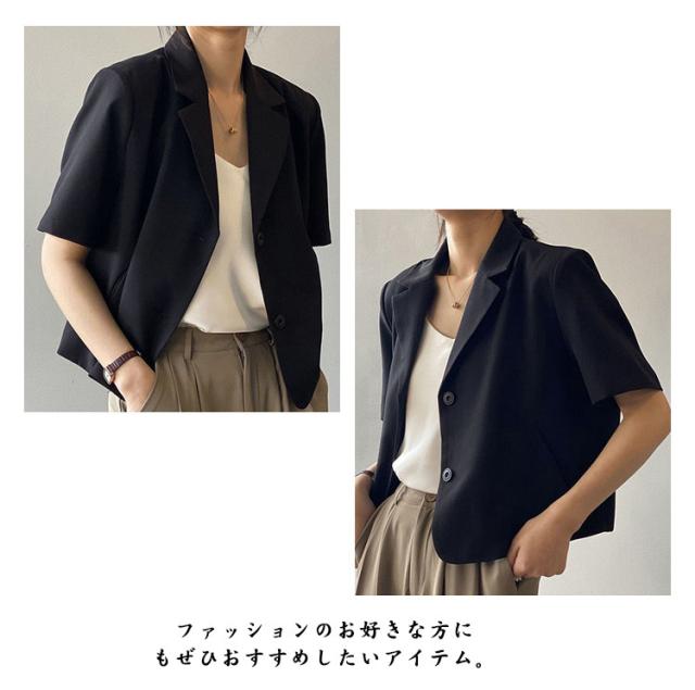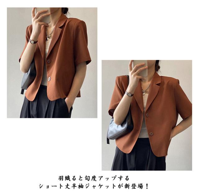 サマージャケット ボタン 春夏 レディース 薄手 オフィス 半袖 上品 ショート丈 前開き スーツ アウター カジュアル サマースーツ カジュアルスーツ 通勤 クロップド丈 羽織り テーラードジャケット フォーマル カーディガン トップス 無地 きれいめ 大人 ジャケット