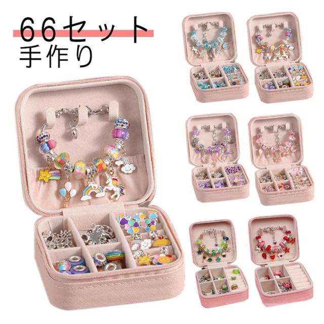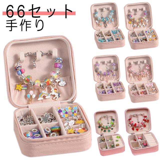 66点セット 66点セット 女の子 ビーズ遊び ブレスレット作り 手作り プレゼント 子供 収納ボックス おしゃれ アクセサリーキット ブレスレット ハンドメイド 誕生日 クリスマス ネックレス 小学生 記念日 Xmas