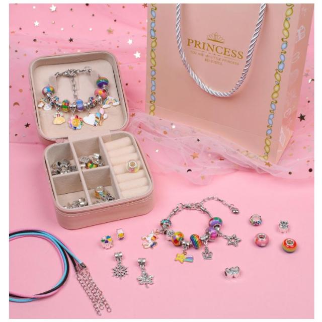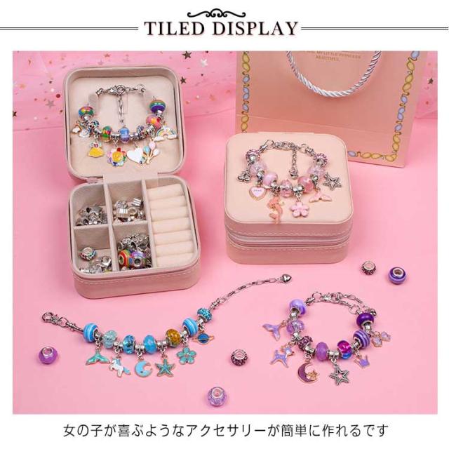 | 66セット 手作り 女の子が喜ぶようなアクセサリーが簡単に作れるです ブレスレットをきれいに収納できる可愛いケースが付き、細かいチャームもしっかり個別に収納可能です | |