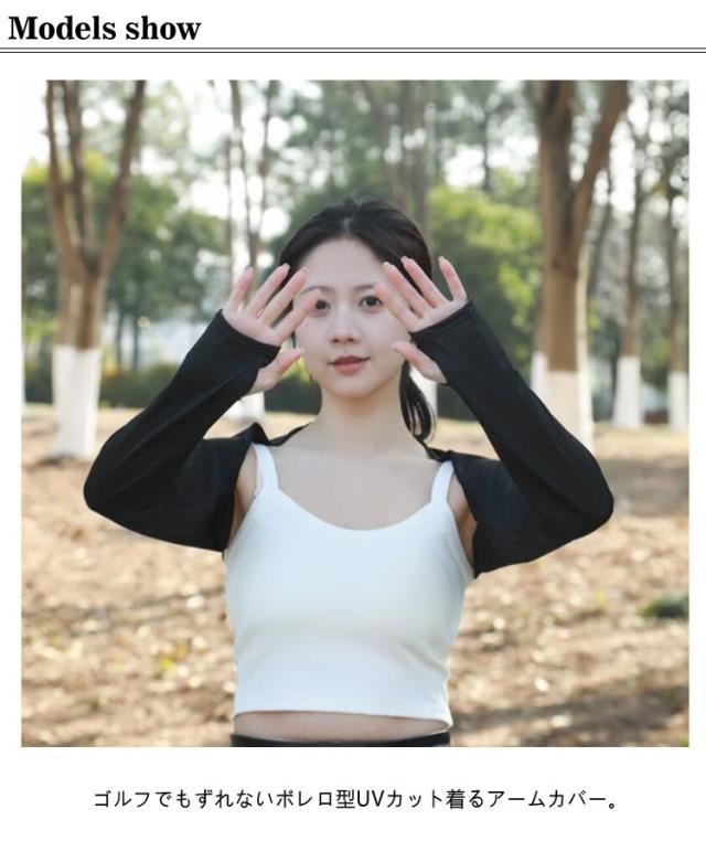 | 2枚セット!【UVカット・冷感】【全7色】 ゴルフでもずれないボレロ型UVカット着るアームカバー。 羽織タイプのアームカバーとして紫外線から腕全体はもちろん肩までしっかりカバー♪ ストール代わりとしても使えこなせる。指穴付きで手の甲も日焼け対策可能です。 接触冷感素材でサラッとした肌触りが心地良い、長袖を着込むより涼しく、脱ぎ着の調節も楽々♪ Tシャツ、ポロシャツの上からボレロ風に着用できます。 伸縮性抜群でズレ落ちるストレスからの解放! コンパクトサイズですのでバッグに入れても邪魔にならない。 軽くて通気性が良く、優れた吸湿性で常に肌をドライに保ってくれる♪ 室内の冷房が気になる時の防寒アイテムとしても活躍します。 ゴルフ、ガーデニング、サイクリング、ウォーキング、釣り、スポーツ観戦、登山、アウトドアなどの幅広く活用! | |