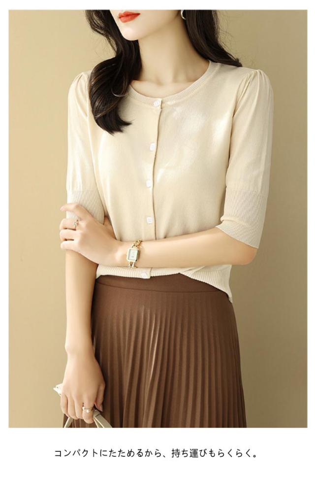 薄手 ニット レディース 大きいサイズ 五分袖 トップス 羽織り カーディガン ニットカーディガン UVケア 接触冷感 ラウンドネック カジュアル 涼しい サマーニット カーディガン オフィス 紫外線対策 春夏 夏 夏服 無地