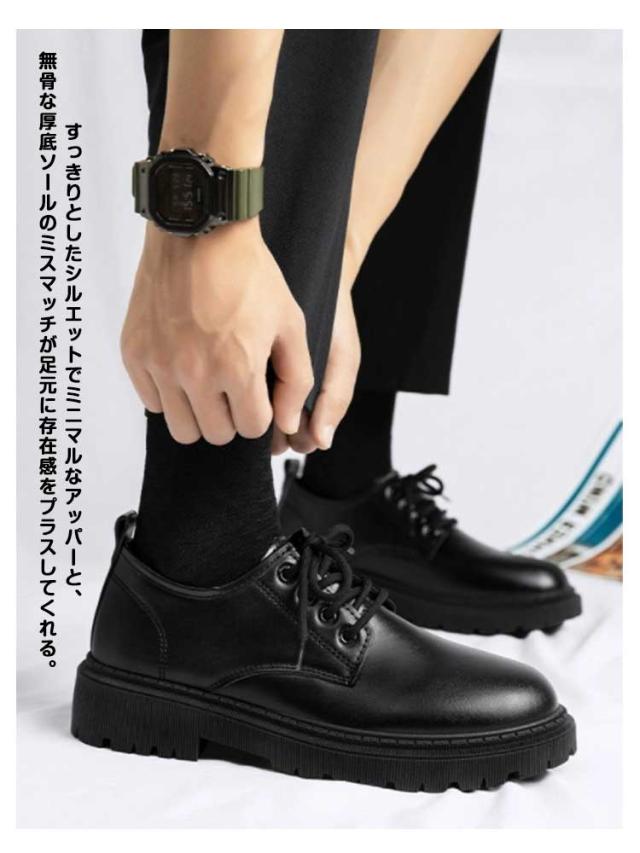 | 24.0cm-27.5cm 上品さと無骨さを融合したカジュアルモードなレザーシューズ。 ドレスシューズにカジュアルなソールを合わせることで、 モードやキレイめ、カジュアル、韓国系と幅広いファッショに合わせやすい表情に。 すっきりとしたシルエットでミニマルなアッパーと、 無骨な厚底ソールのミスマッチが足元に存在感をプラスしてくれる。 柔らかく足馴染みの良いPUレザー素材を使用。汚れがついても拭きやすい。 衝撃吸収のインソールと、軽量で履き心地がよく歩きやすいので、 タウンユースは勿論、カジュアルシーン、旅行などにも最適! コーディネート問わず様々なスタイルに取り入れやすいので、 幅広いシーンで活躍してくれる大人のスタイリングに欠かせないクラシックな風格の大人ドレスシューズ。 | |