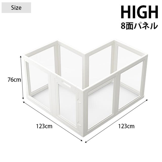 ■備考:クリアパネルで圧迫感のないおしゃれな扉付きペットサークル8面パネルHIGHタイプ