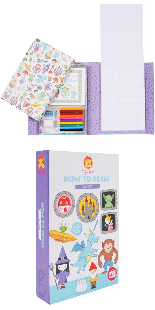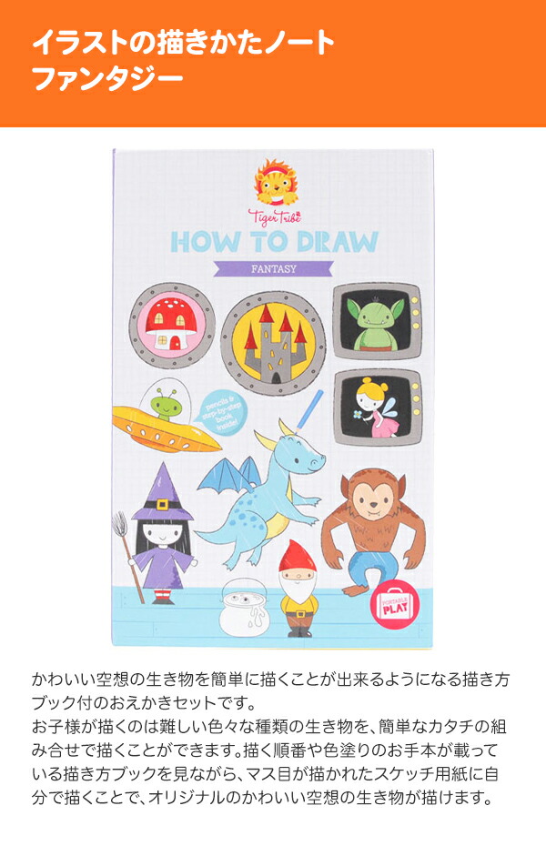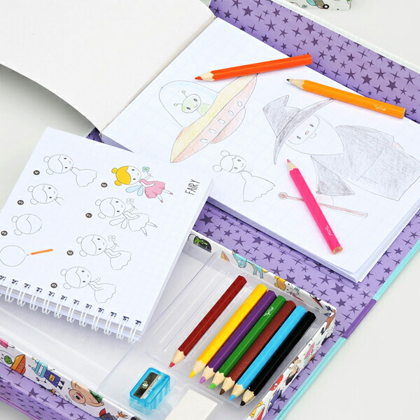 かわいい空想の生き物を簡単に描くことが出来るようになる描き方ブック付のおえかきセットです。