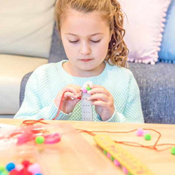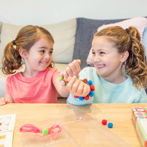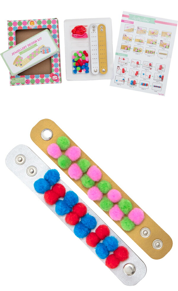ポンポンがついたオリジナルのブレスレットが作れるキットです。