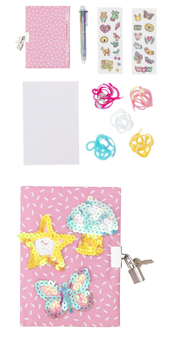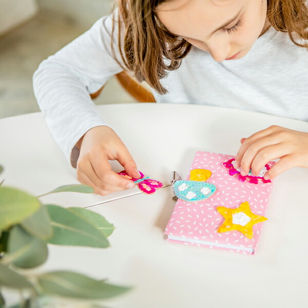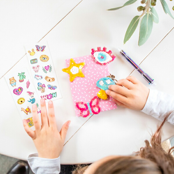鮮やかなスパンコールシールで、オリジナルのかわいいノートが作れるセットです。