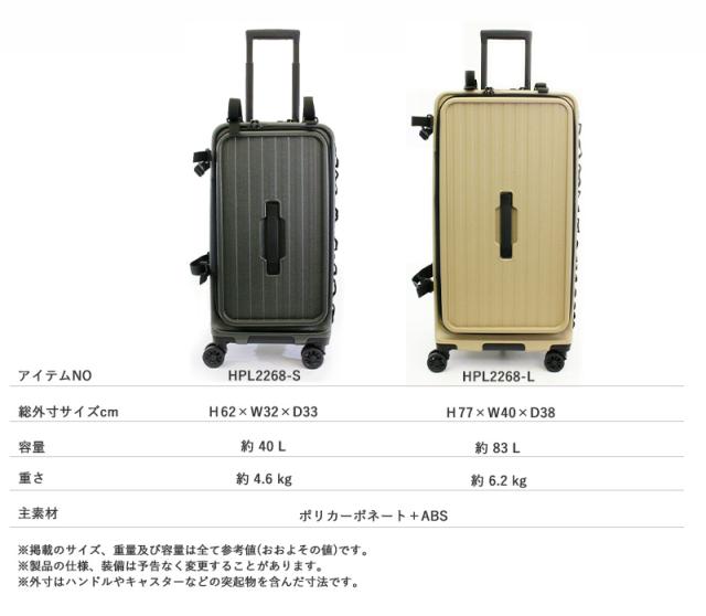 【送料無料】シフレ ハピタスプラス HPL2268-S 40L スーツケース Sサイズ Siffler TSAロック キャリーケース アウトドア キャンプ テーブル フロントオープン シフレロック 保冷 保温 旅行 キャリーバッグ キャリー 旅行カバン 旅行バッグ