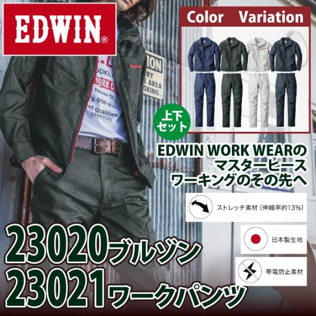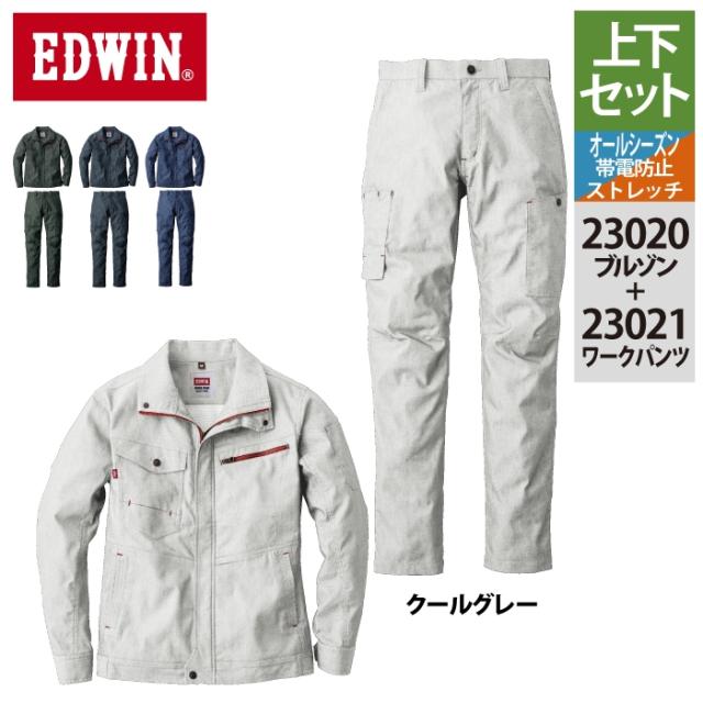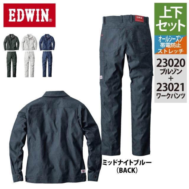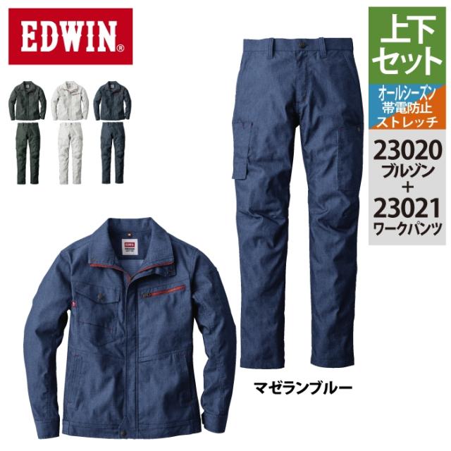 作業服 オールシーズン エドウイン EDWIN 上下セット 23020 ブルゾンS-3L と 23021 パンツ 70-100 作業着 作業ズボン