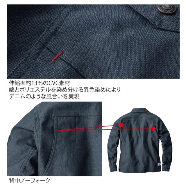 ◇フロントと左胸:金属ファスナー・袖口と右胸:ドットボタン・背中ノーフォーク