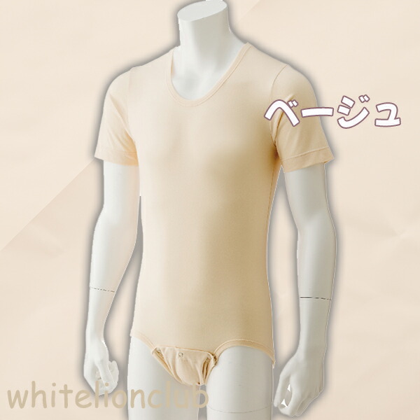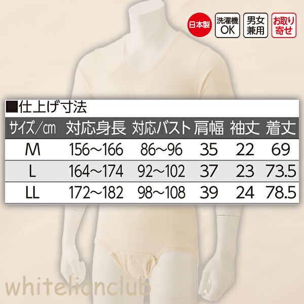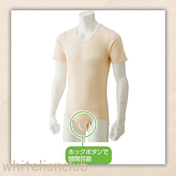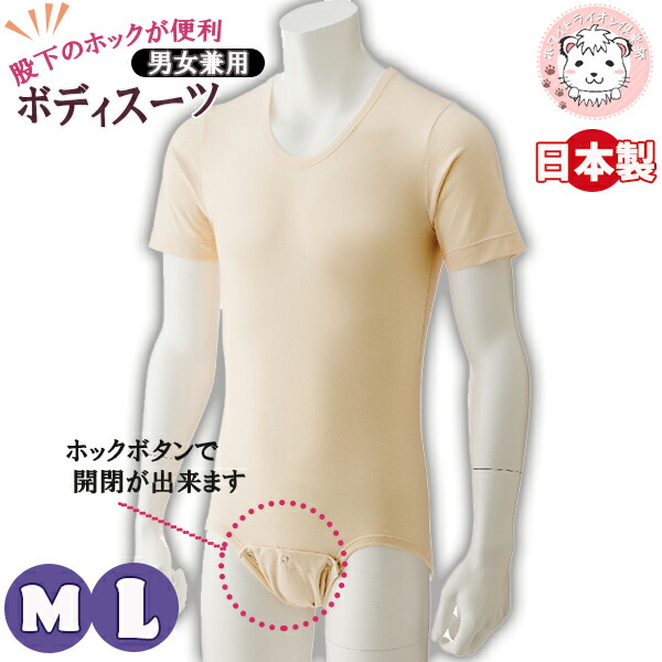 ボディスーツ 股下ホック 半袖 5分袖 オムツいじり防止 M/L | 肌着 男女兼用 介護インナー 男性 女性 入院 介護 日本製