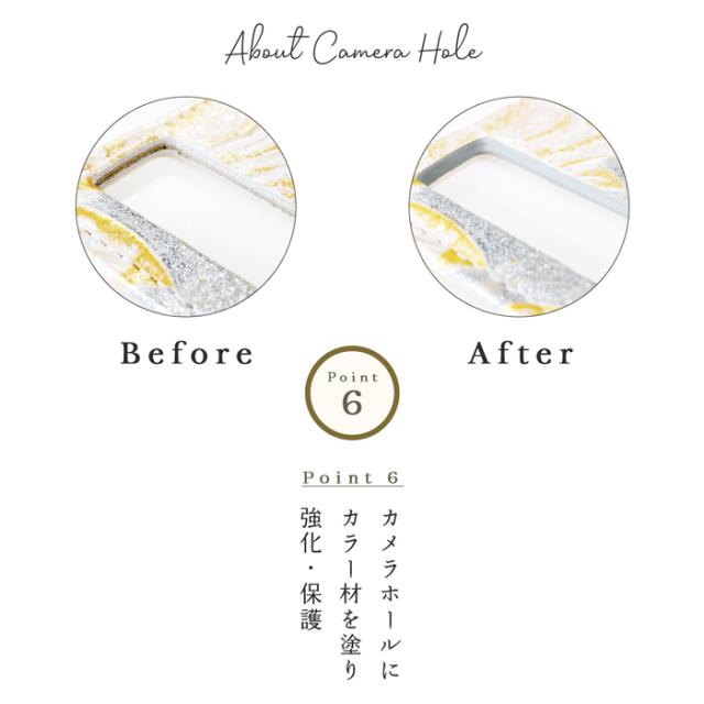 内側のケースに合わせてカメラ穴・フラッシュ穴等を一点一点、手作りであけております!